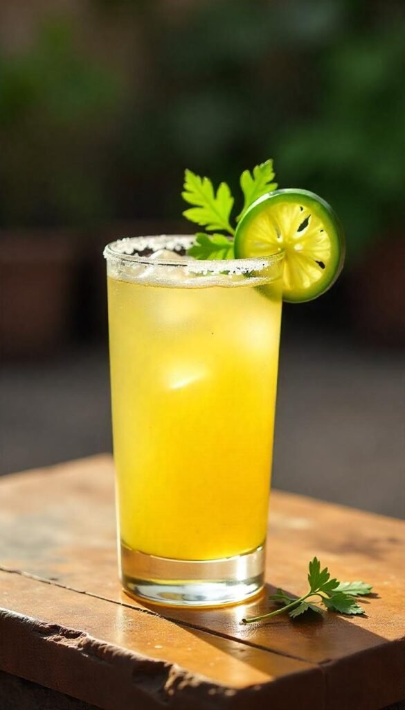 4. Garnish: Add a lime wedge and a slice of jalapeño for garnish. Serve immediately and enjoy!